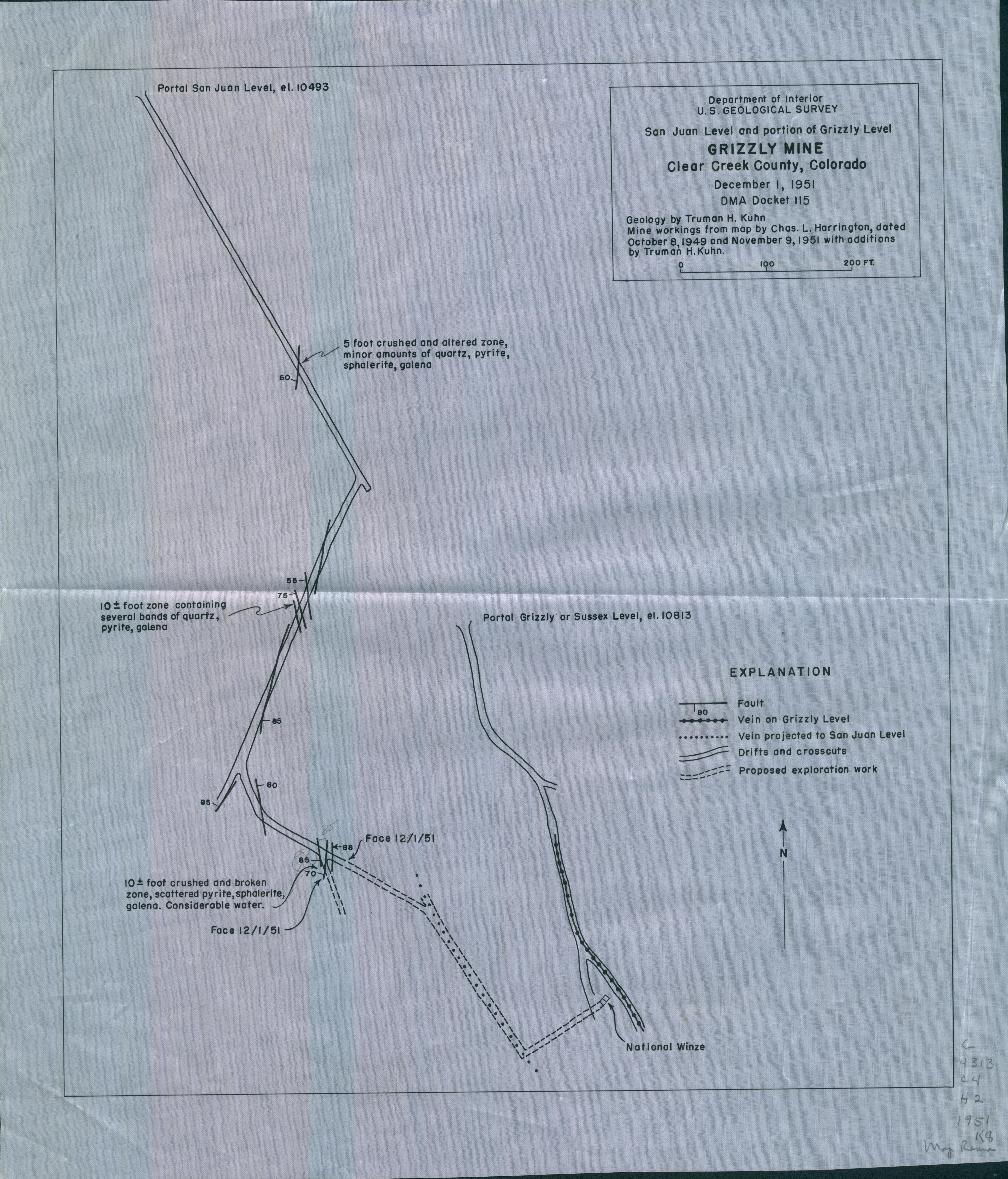 San Juan level and portion of Grizzly level, Grizzly mine: Clear Creek County, Colorado