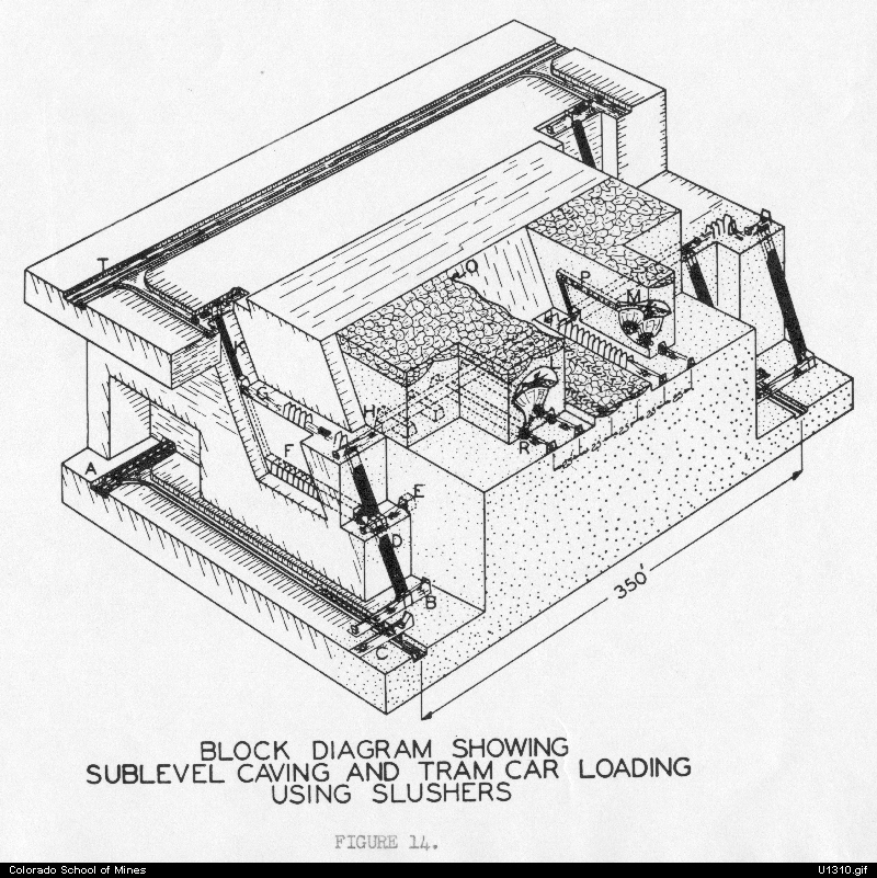 Diagram showing sublevel caving and tram car loading