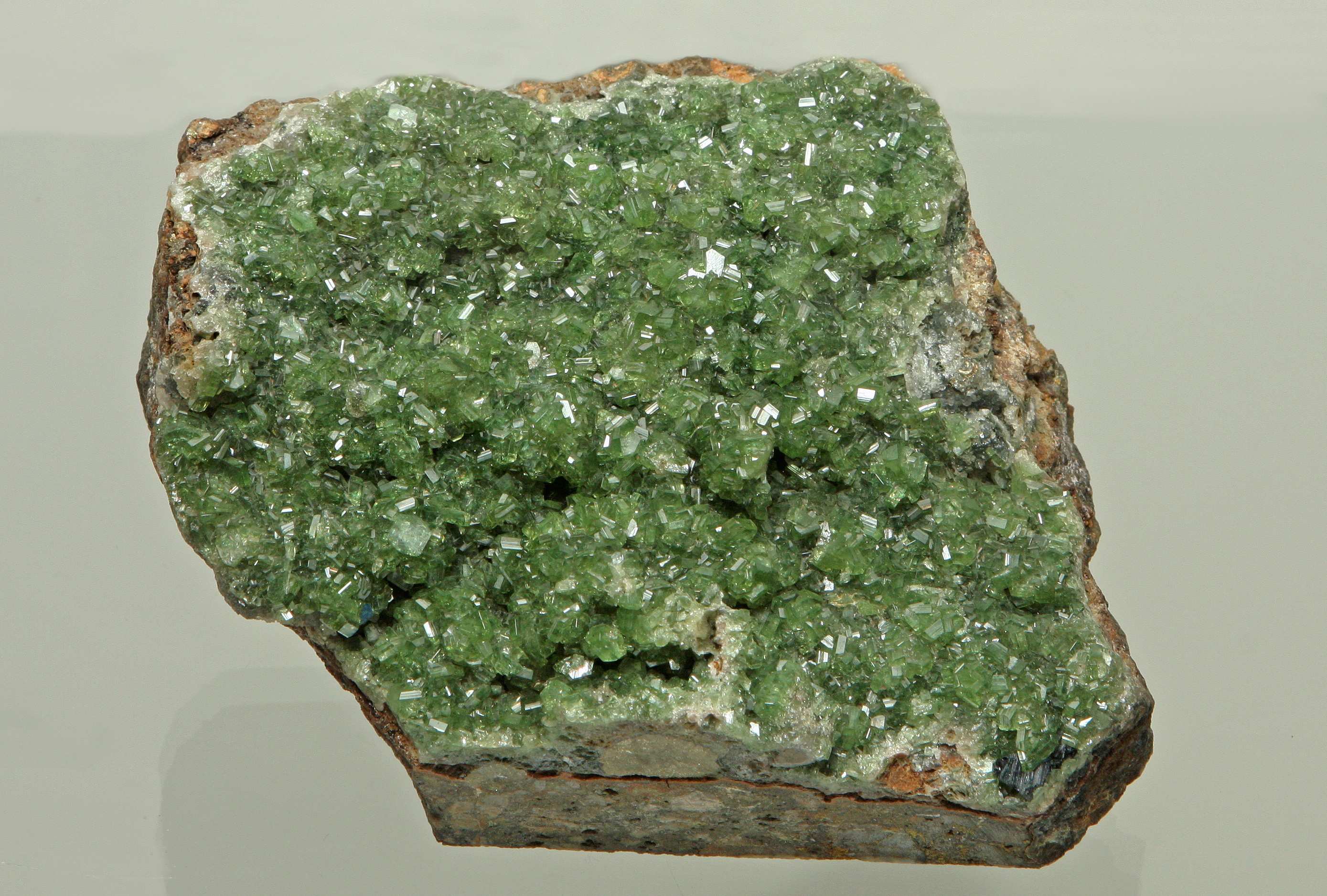 Small glassy green crystals of ludlamite.