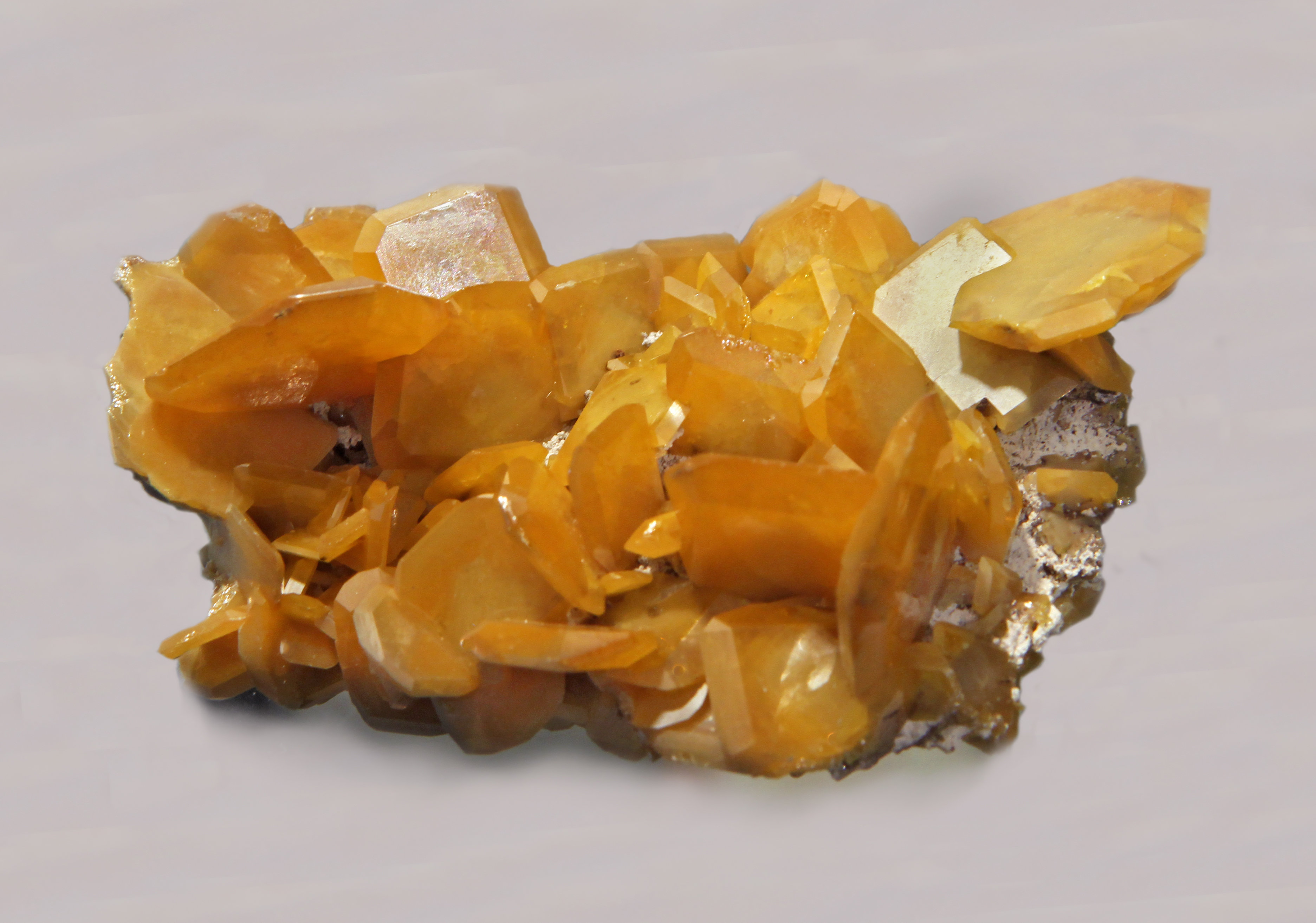Cluster of yellow blades of wulfenite, Touissit, Oujda Region, Morocco.