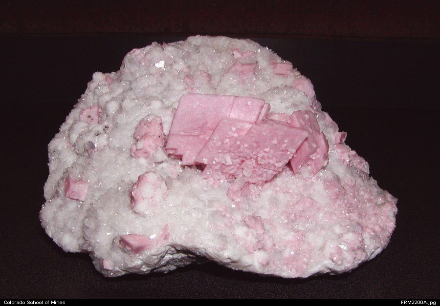 Rhodochrosite on drusy quartz: Colorado, San Juan County, Silverton, Sunnyside Mine